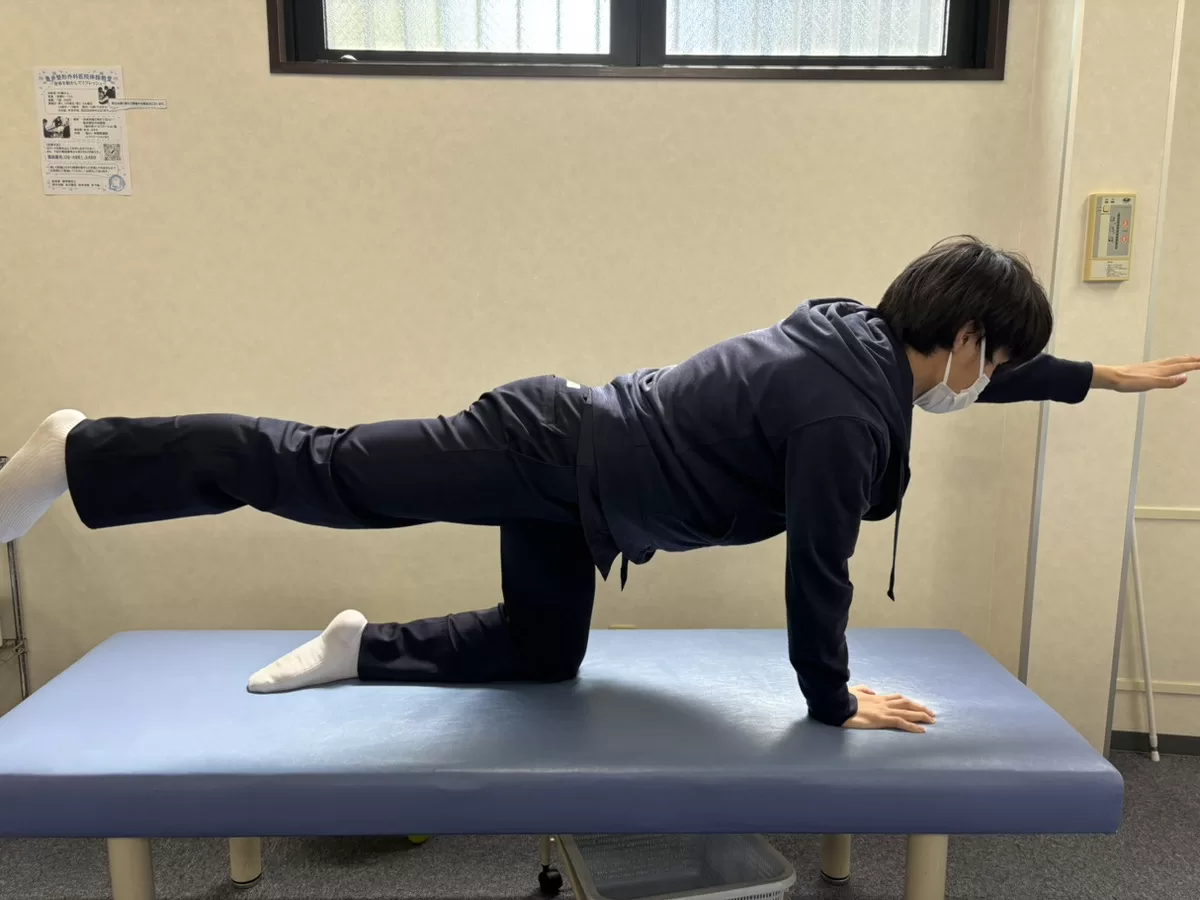 実際に行うと腹筋群や背筋群の筋力が大切になってくると実感しました。
